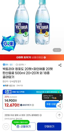 빅토리아 탄산수 500ml 20개 3개 골라담기