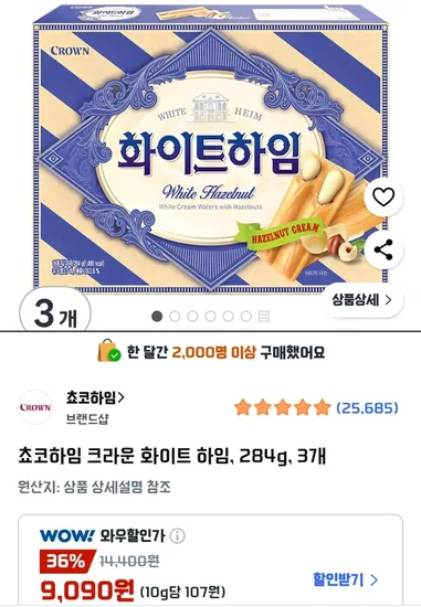 크라운제과 하임 어쏘트 8팩 (15,920원/3,000원) 외 40종 할인1 | 지름알림