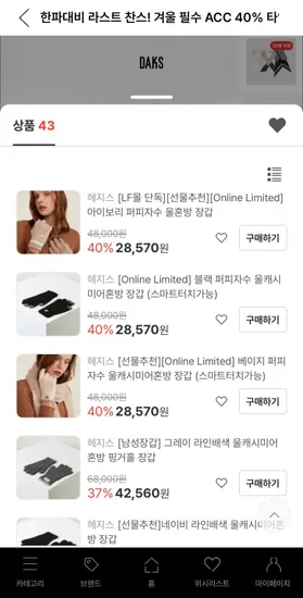 헤지스 닥스 머플러 장갑 방한슈즈 외 다양