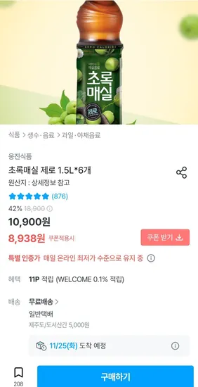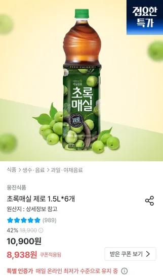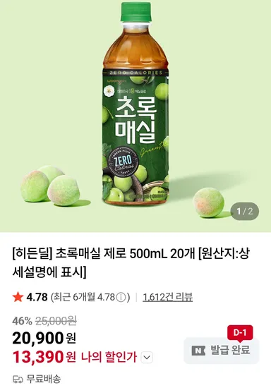 초록매실 제로 500mL 12개 / 10,570원 무료배송