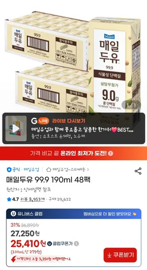 매일두유 99.9 190ml 48팩