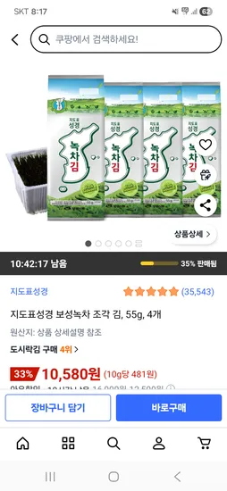 지도표성경 보성녹차 조각김 55g 4개
