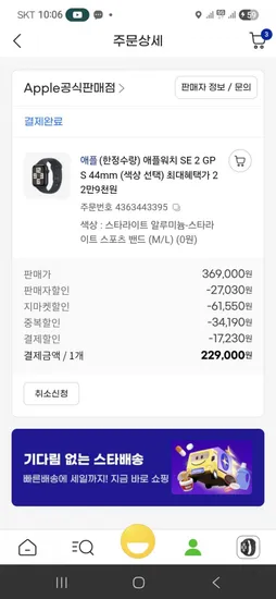애플워치 SE2 GPS 40mm 외 다양 199,000원