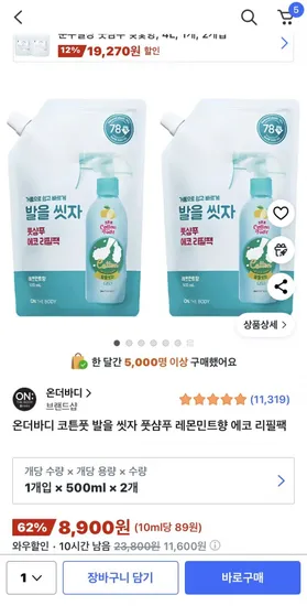 온더바디 코튼풋 발을 씻자 풋샴푸 레몬민트향 에코 리필팩