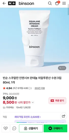 빈순 판테놀 장벽 수분크림 80ml 1개