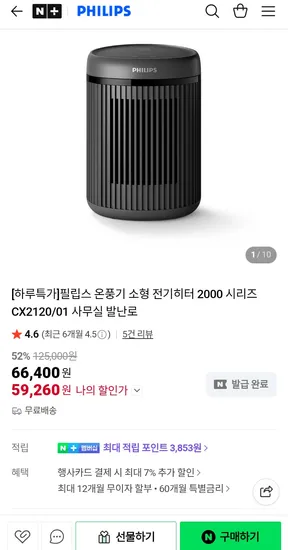 필립스 온풍기 소형 전기히터 2000 시리즈 CX2120/01