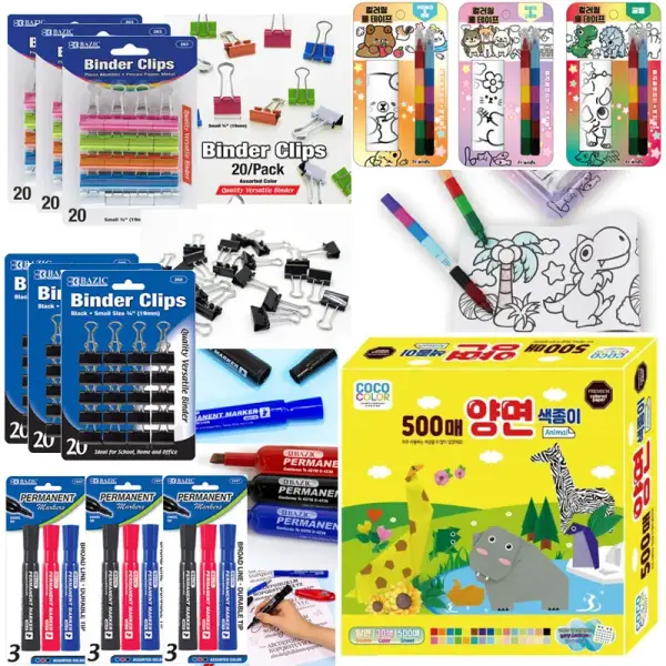 롤색칠스티커 색연필12색 더블클립60개