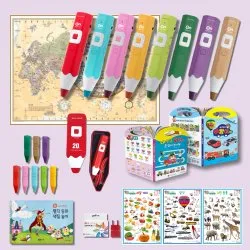 세이펜 틴케이스 레인온펜 실리콘케이스 충전기 손잡이책2권 명작색칠1권 한영세계지도 학습벽보3종