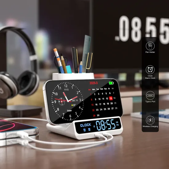 3-in-1 LED 알람시계 무선 충전기 펜 홀더