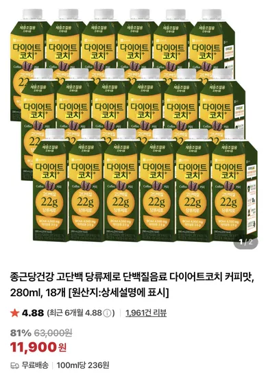 종근당건강 다이어트코치 단백질음료 280ml x 18팩 외 18개