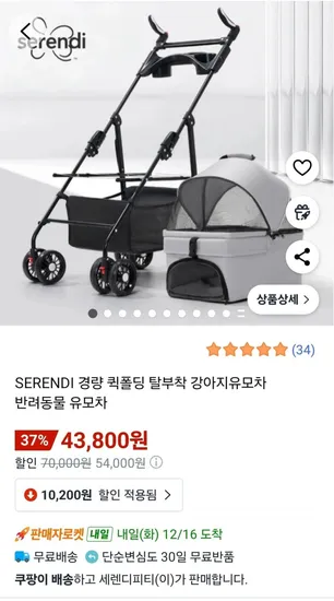 SERENDI 경량 퀵폴딩 강아지 유모차 반려 동물 유모차