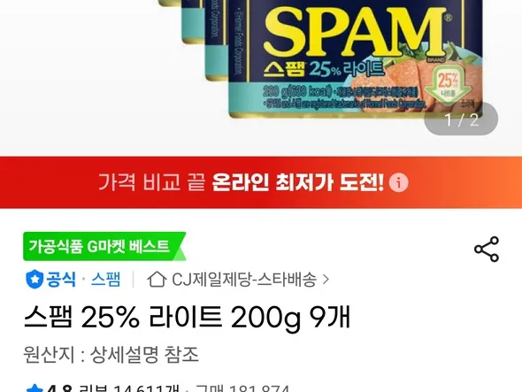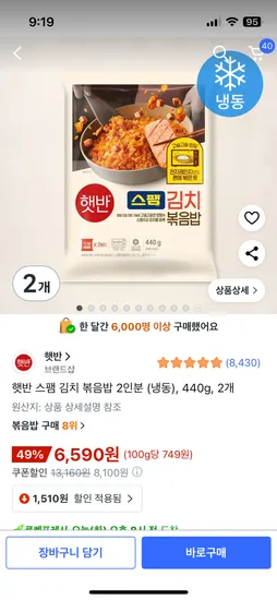 햇반 스팸 김치 볶음밥 2인분 (냉동) 440g 2개