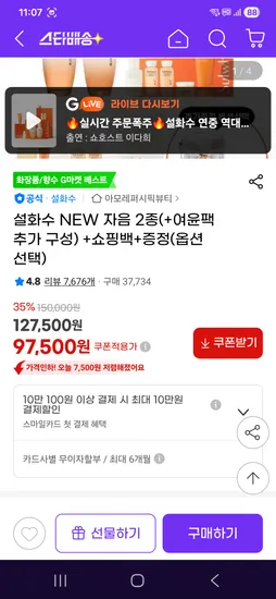 상품 구매 시 정확한 행사 정보는 쇼핑몰 홈페이지에서 확인해 주세요.