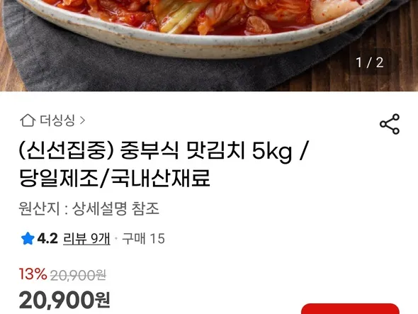 김치 볶음밥 10봉 (14,190원/무료), 새우 볶음밥 10봉 (15,840원), 김치 5봉 + 새우 5봉 (14,920원)