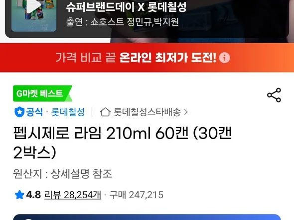 펩시 제로슈거 라임향 제로카페인 355ml 48개