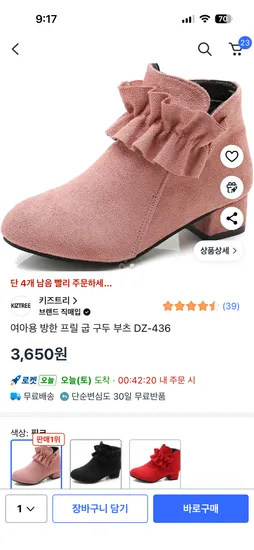 키즈트리 여아용 방한 프릴 굽 구두 부츠 외 다양