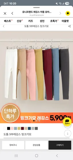 유니프렌드 도톰 9부 레깅스 밍크 기모