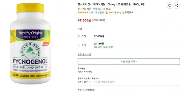 헬시오리진스 피크노제놀 120 베지캡슐 120정 1개
