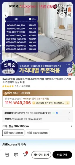 일월 초절전형 워셔블 카본 탄소전기매트 37,674원부터