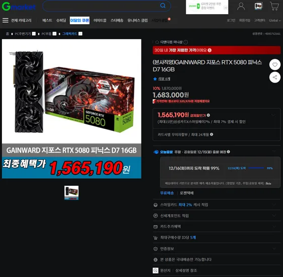 GAINWARD 지포스 RTX 5080 피닉스D7 16GB