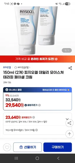 피지오겔 데일리 모이스쳐 테라피 페이셜 크림 150ml 2개