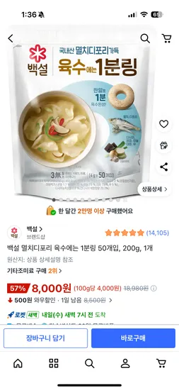 코인육수 멸치디포리 육수1분링 50개입 200g