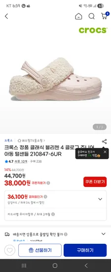 크록스 클래식 블리첸 4 클로그 주니어 아동 털샌들 210847-6UR