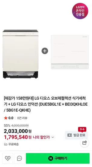 LG 디오스 오브제컬렉션 식기세척기 LG 디오스 인덕션