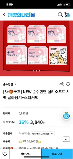 순수한면 실키소프트 5팩