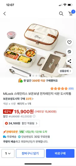 MiLock 스테인리스 보온보냉 전자레인지 식판 도시락통
