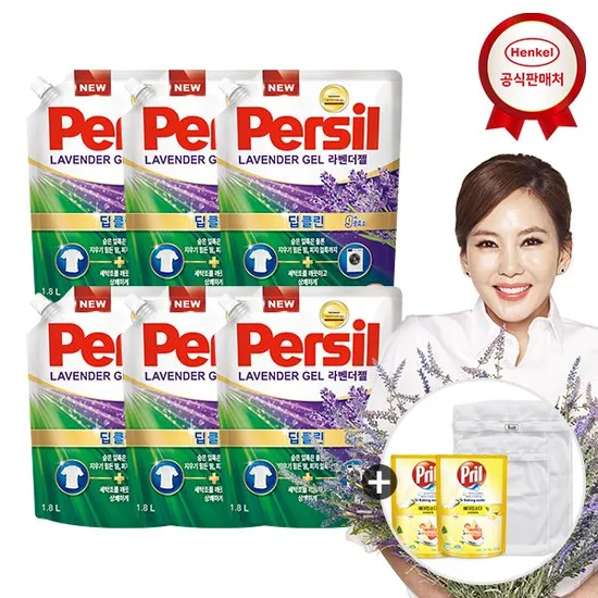 퍼실 딥클린 라벤더 세탁세제 1.8L 6개 프릴 300ml 2개 세탁망 증정