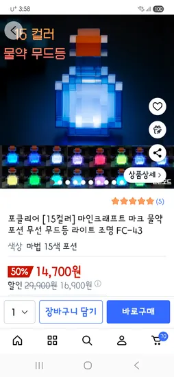 마인크래프트 포션 조명 14700원