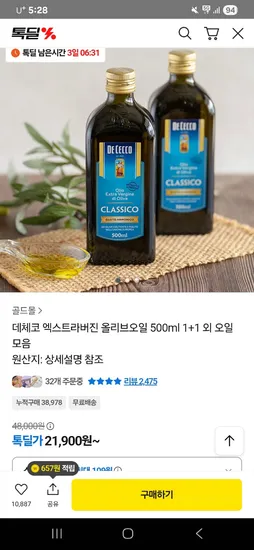 데체코 엑스트라버진 올리브오일 500ml 2개