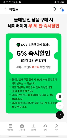 상품 구매 시 정확한 행사 정보는 쇼핑몰 홈페이지에서 확인해 주세요.