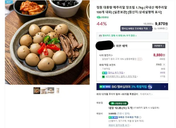 메추리알 장조림 1.7kg 8,800원