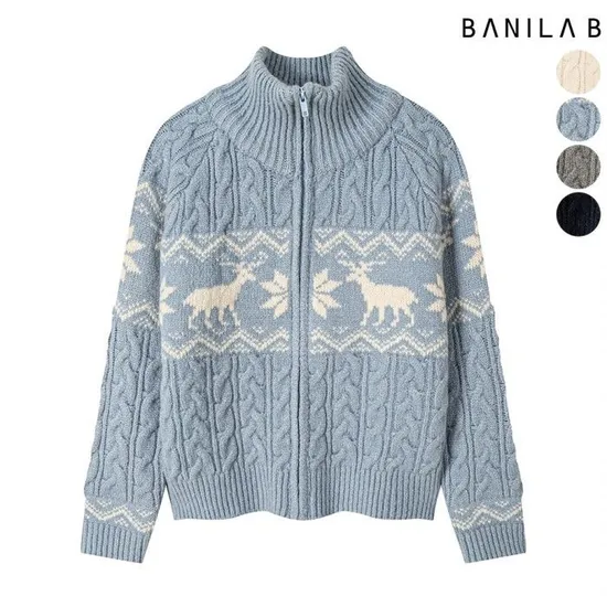 바닐라비 여성 노르딕 꽈배기 집업 가디건