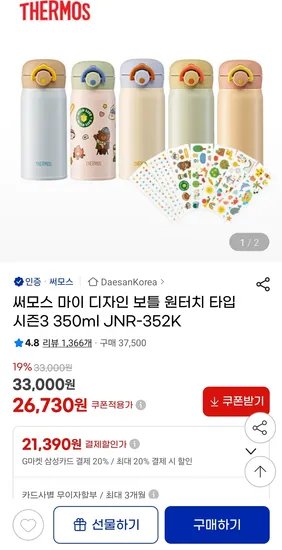 써모스 마이디자인 350ml 텀블러 메가커피 스티커 26730원