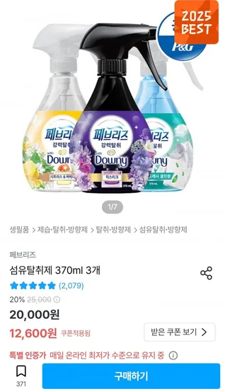 페브리즈 섬유탈취제 370ml 3개