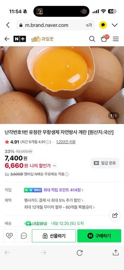 과일꾼 난각번호1번 무항생제 자연방사 유정란 계란 20구